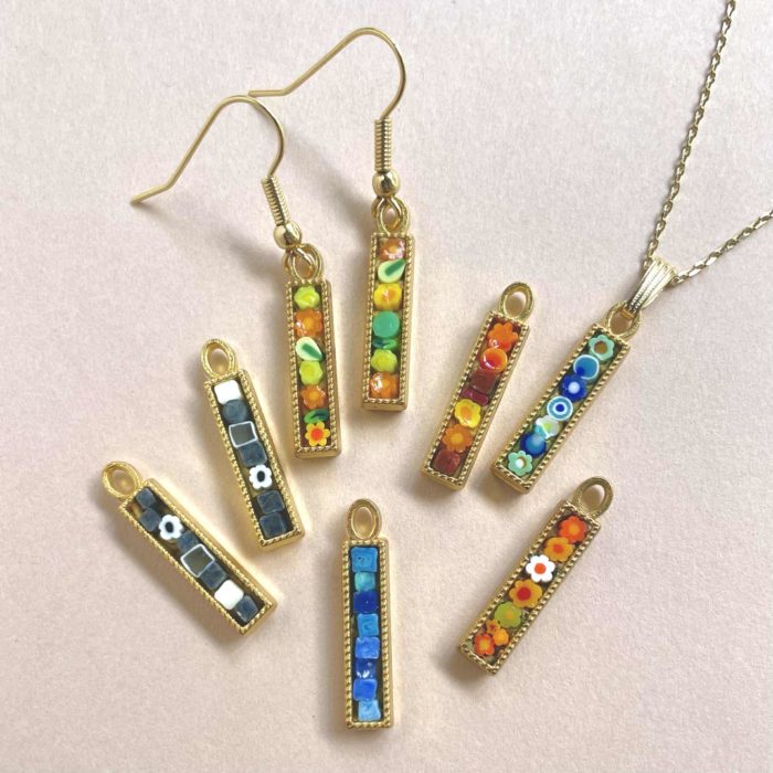 かわいくて、印象的な色で、懐かしくもあり目新しいガラスモザイクのアクセサリー。