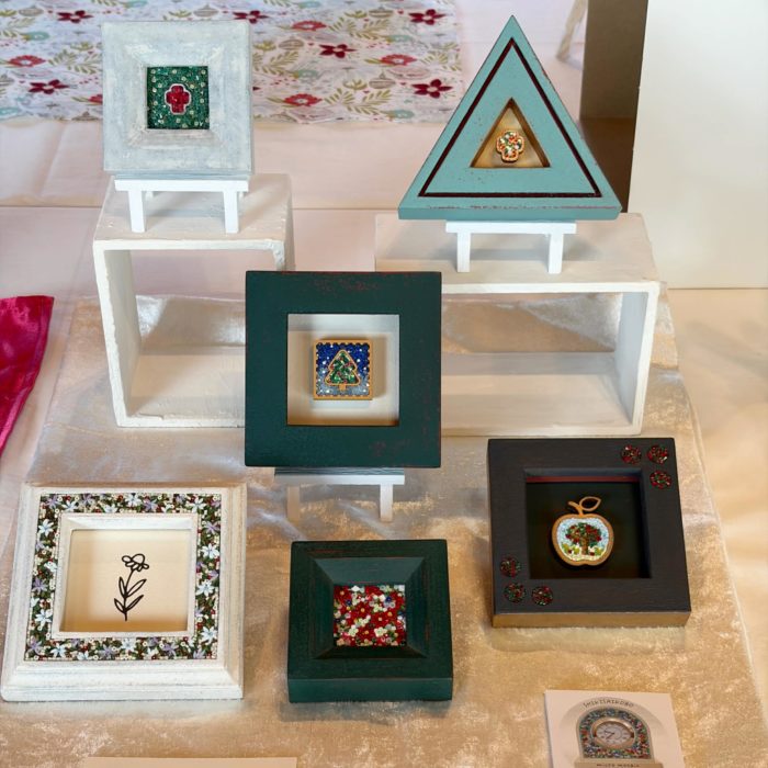 生徒さんからは「教室にいくとミクロモザイクの制作も楽しみながらも、毎回癒されるんです」とのこと。講師養成講座を修了された生徒さんたちとイベントに出展されるなど、とても慕われている先生です。